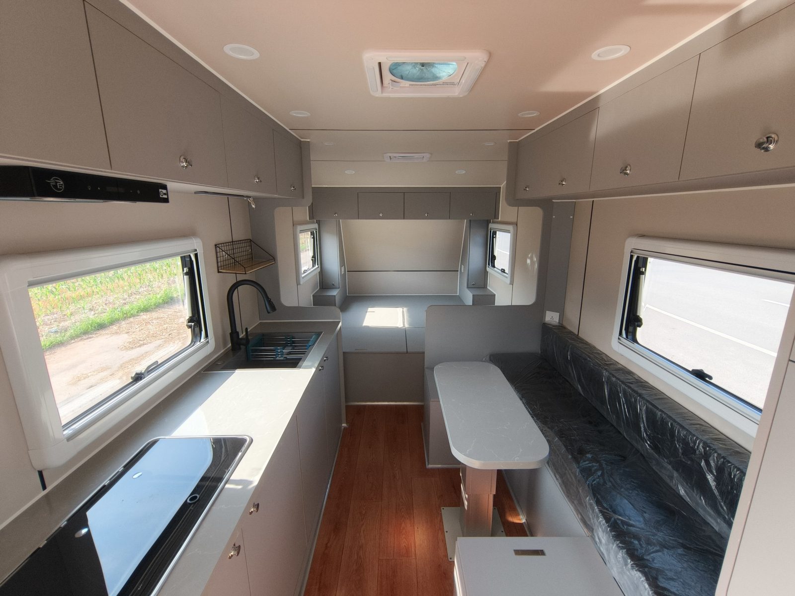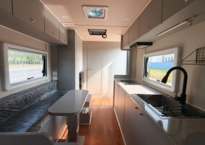 The interior floor plan is designed for ergonomic flow. From the convertible sleeping areas to the compact yet fully functional kitchenette, no space is wasted in a Skadoo caravan.