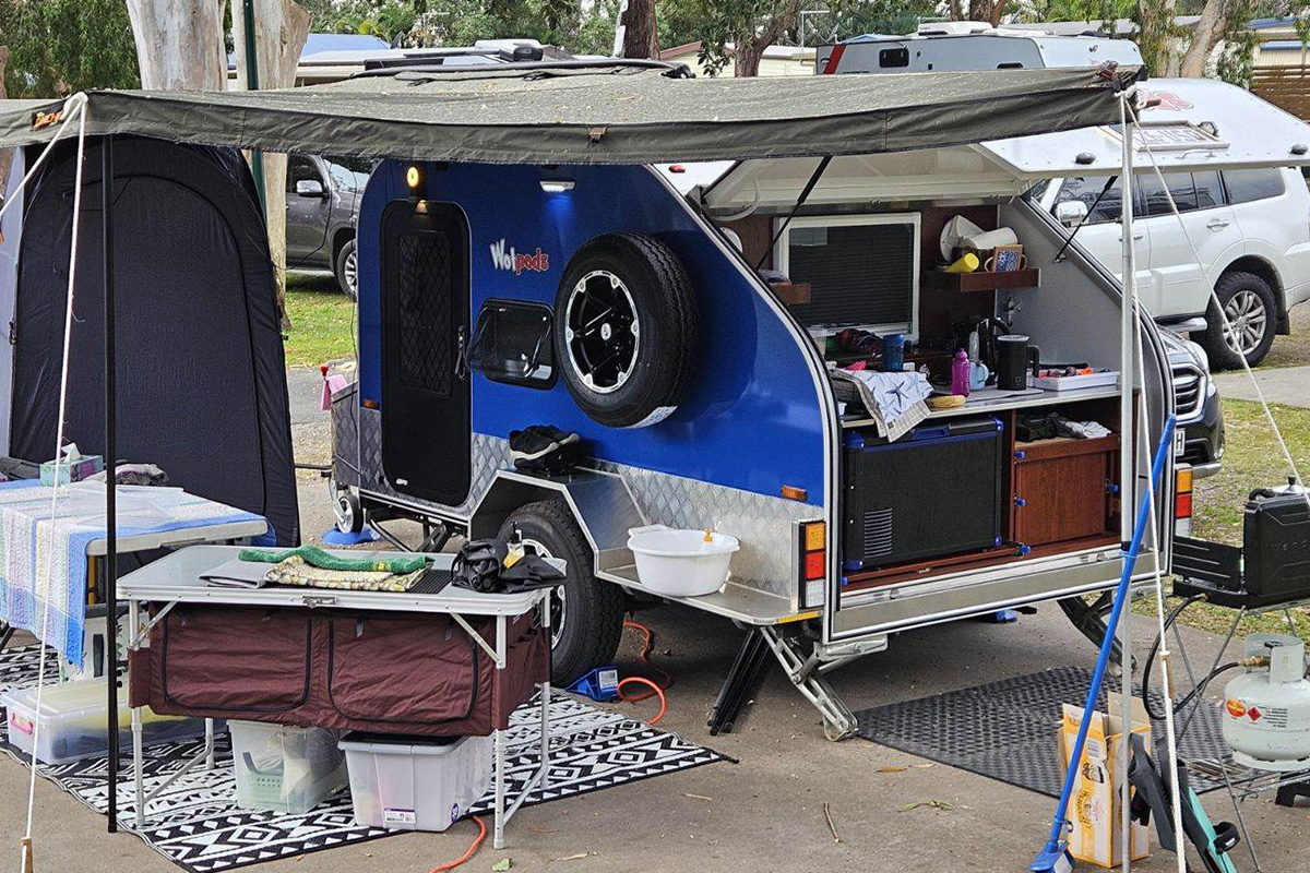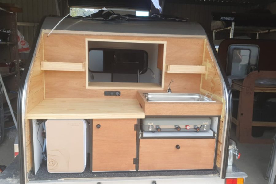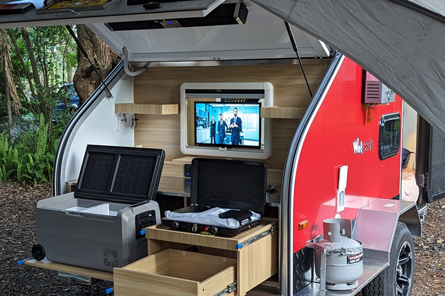 I don’t run a workshop anymore, and instead can offer a national warranty service (your closest RV centre) rather than back-to-shop. Our product is all steel and aluminium and built for Australian conditions and expectations. We were the first teardrop to introduce a TV that can be watched inside and outside. Our batteries are all lithium as standard. We offer multiple kitchen configurations, including 2 x 30L fridges so you can have one on freeze. Up to 450w of solar. Chassis bitumen sprayed for added protection… our innovations go on, some kept a surprise to avoid our copycats.